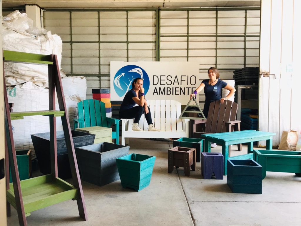 Aunque el hito que le ha generado más impacto a Anita ha sido el desarrollo de su línea de mobiliario urbano -sillas de playa- en el proyecto “Una Tonelada de Plástico” para el Parque Bicentenario, en conjunto a la Municipalidad de Vitacura, en el año de la pandemia, 2020; esto es la punta del iceberg de lo que está detrás de Desafío Ambiente, que procesa cerca de 25 toneladas de basura plástica al mes.